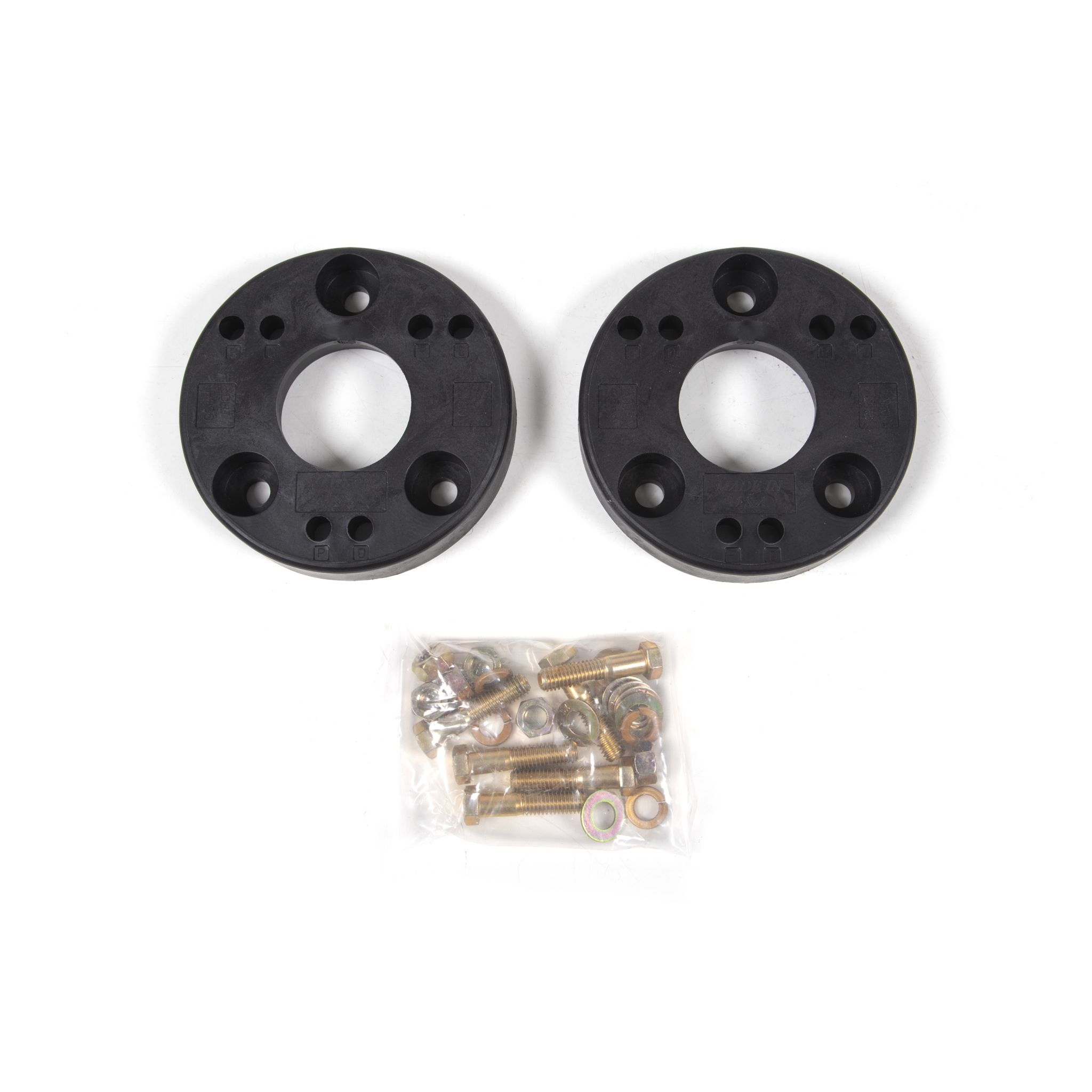 Level out the stance of your new Ford F150 Lightning with this 2" leveling kit from Zone Offroad. Designed for proper function and handling, the lift is provided by a 2-piece, combination top-mount and preload strut spacers designed to provide a full 3" of lift without overextending the suspension at full droop, compared to other options on the market that utilize a top strut spacer only. Get the look your truck deserves, while maintaining ride quality and clearance for up to 33" tires.