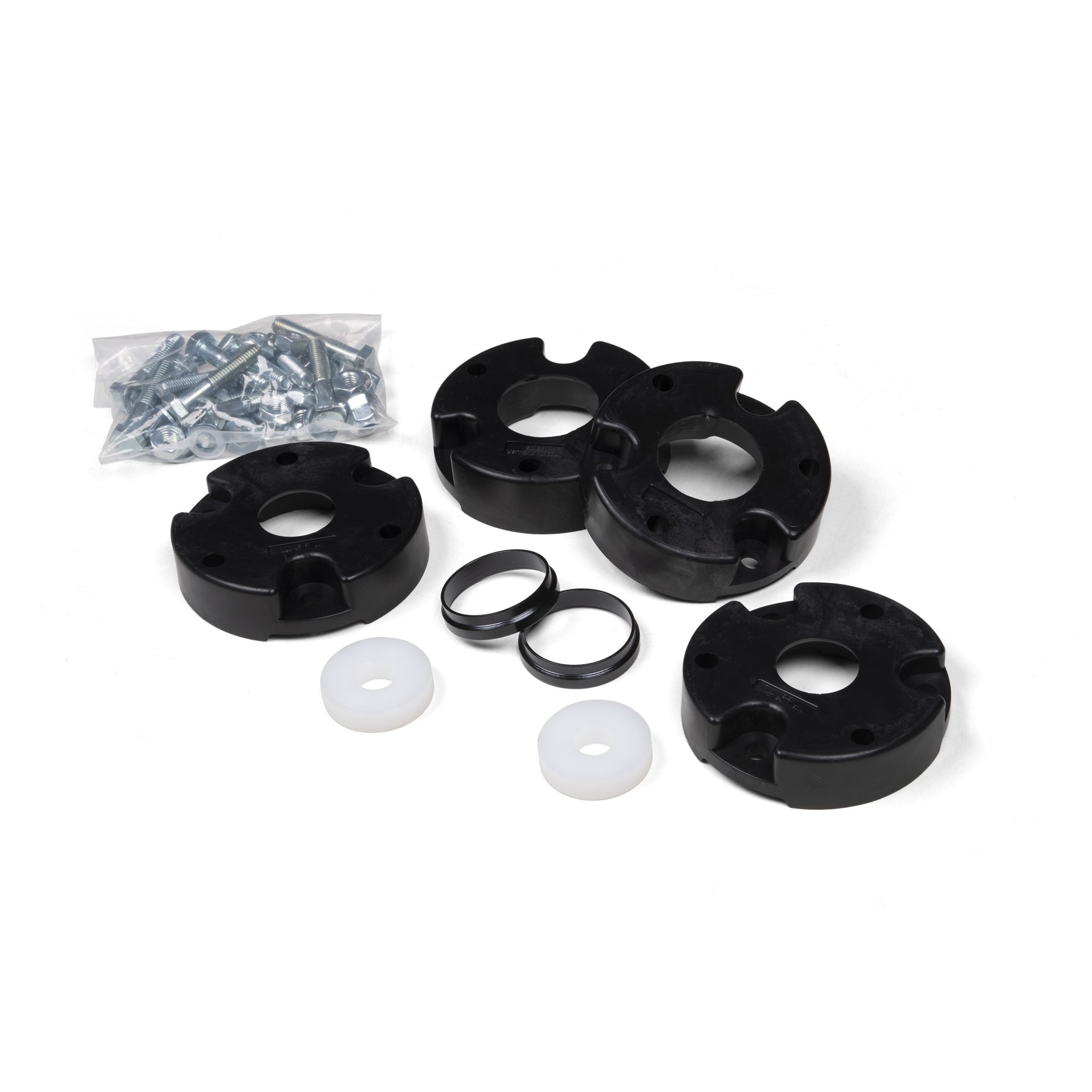 Building off the impressive design and capability of the new Ford Bronco with its on the 4-corner coilover design, the team at Zone Offroad are offering a 2" lift solution designed for the Badlands trim and Sasquatch-equipped 20201 Ford Broncos. These new 2" lift kits are lift and level the stance eliminating the factory nose-low rake and allowing clearance for up to 35" tires. This new kit is designed to take advantage of the impressive travel on the new Bronco utilizing top mounted strut spacers to raise the stance without sacrificing ride quality or overall driveability. The spacers are built from heavy duty semi-aromatic glass-fiber reinforced nylon resin design, offering strength and a clean OE appearance once installed. Additionally supplied for the front a set of spring perch spacers to level out the front stance as well as bump stops extensions which allow you to get the lift without overextending the suspension-steering/driveline operating angles allowing for extreme use. Rounding out the kit is replacement hardware along with step-by-step instructions allowing you to bolt-on this 2" lift kit within a few hours. Optional Adventure Pro Series Upper Control Arms are available for additional strength and performance. Give your Bronco a boost with Zone Offroad.