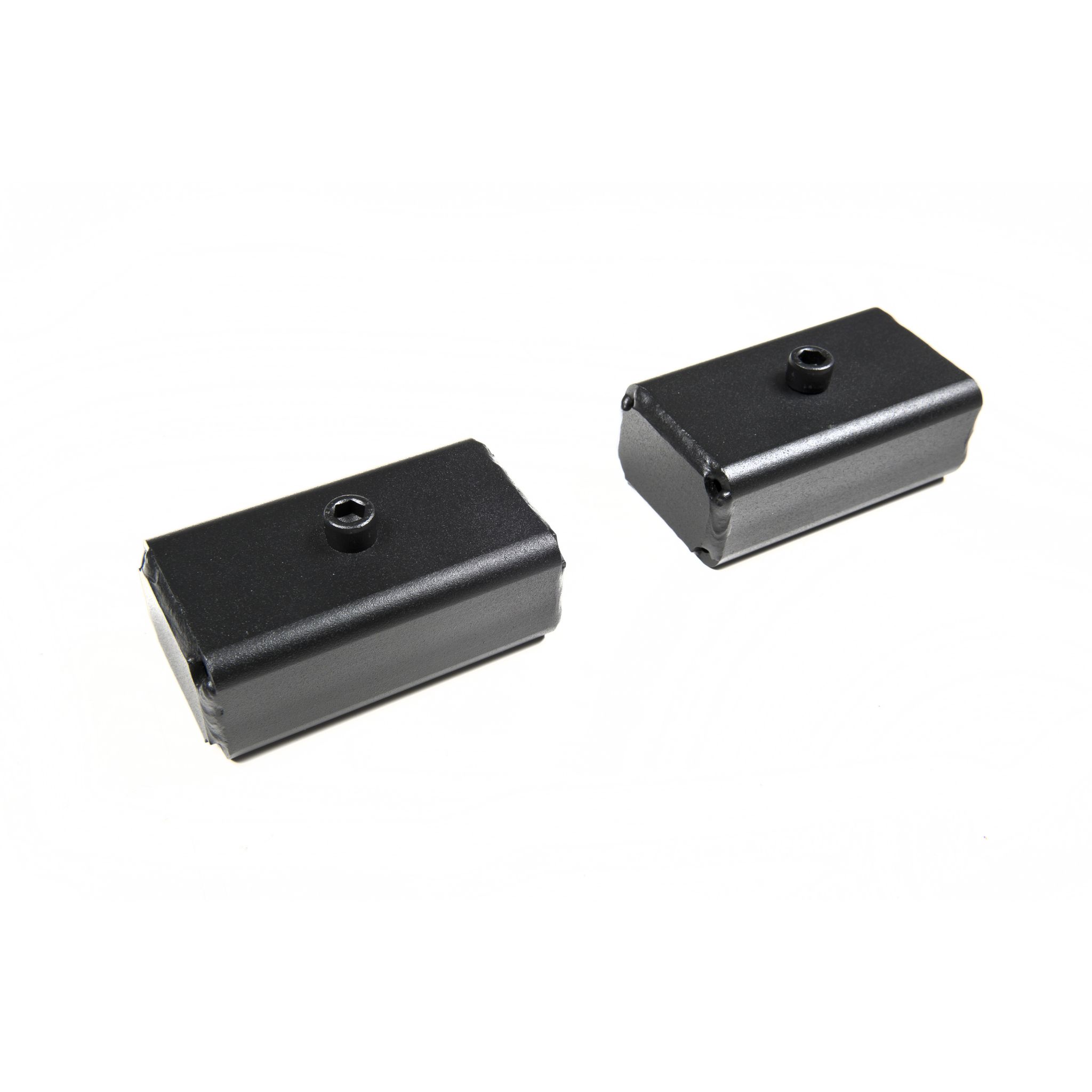 These high quality 2" fabricated lift blocks are specially designed to lift the rear of later model GM HD trucks. They come finished in a durable textured black powder coat and uses a flat (non-tapered) design. Uses 18mm pin size. Sold in pairs.