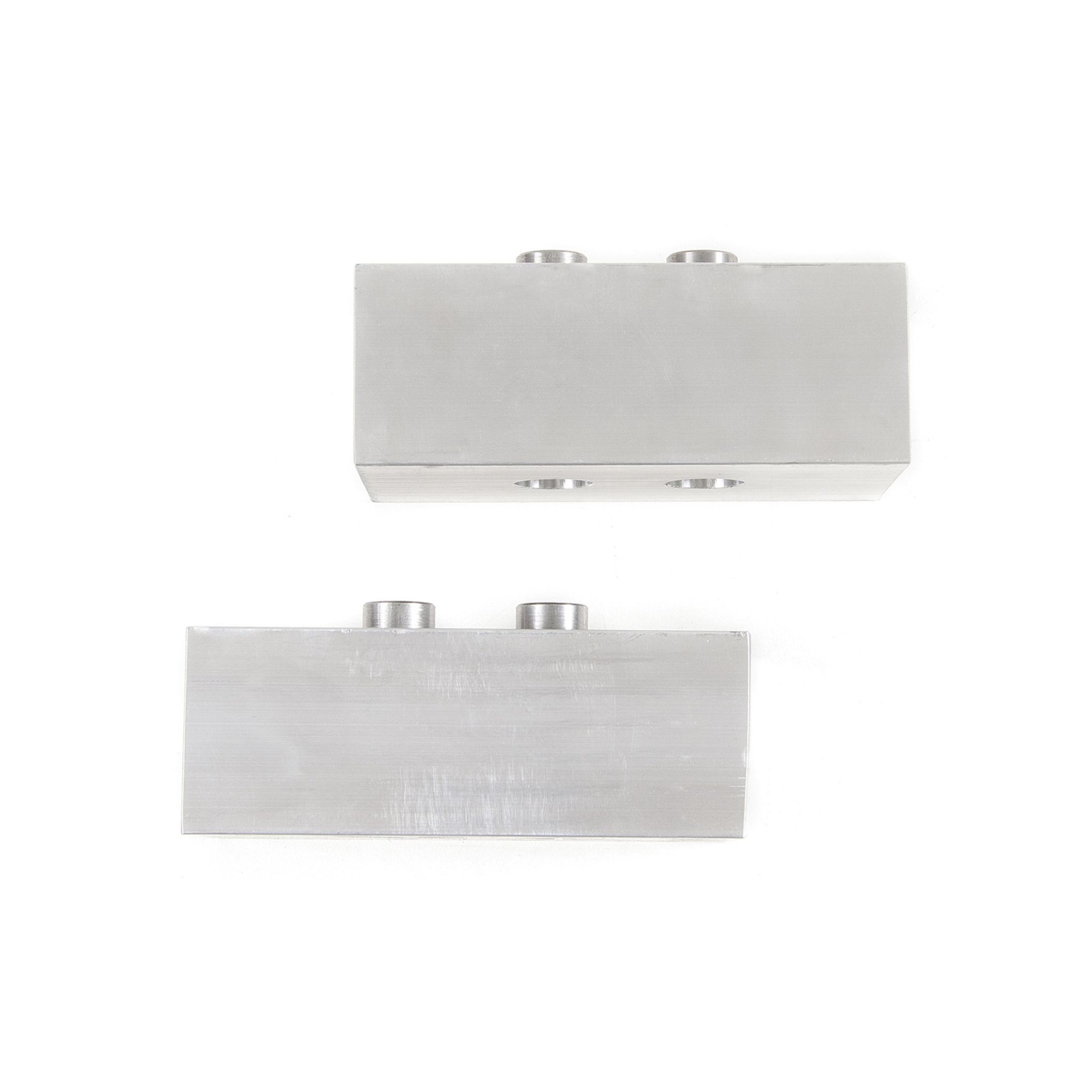 These high quality 2" aluminum lift blocks are specially designed to lift the rear of Ford F150 equipped with dual center pins. They come finished in a raw aluminum and are ready to install. Sold in pairs.