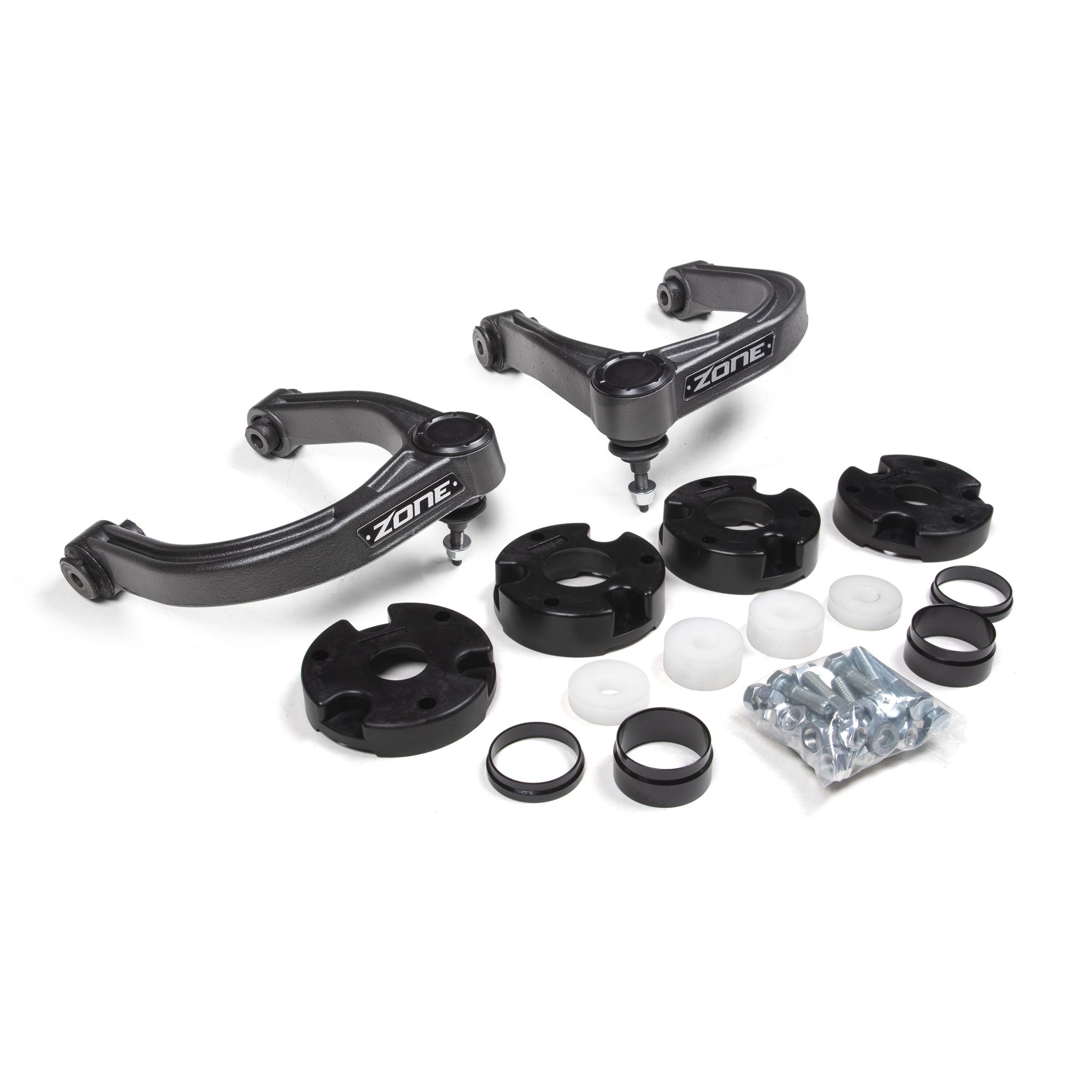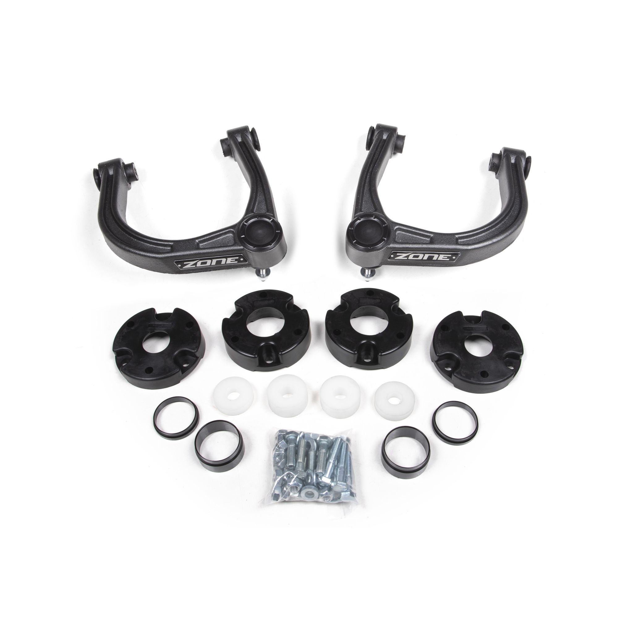 Take your Sasquatch-equipped Bronco higher with the 3" Adventure Series lift kit from Zone Offroad. Designed to maintain ride quality, handling and performance with room for larger tires, Kits build off the factory suspension geometry and add 2-piece strut spacers, Adventure Pro series upper control arms and all the necessary hardware to complete the install allowing clearance for 35-37" tires. Get the look and performance with Zone Offroad.