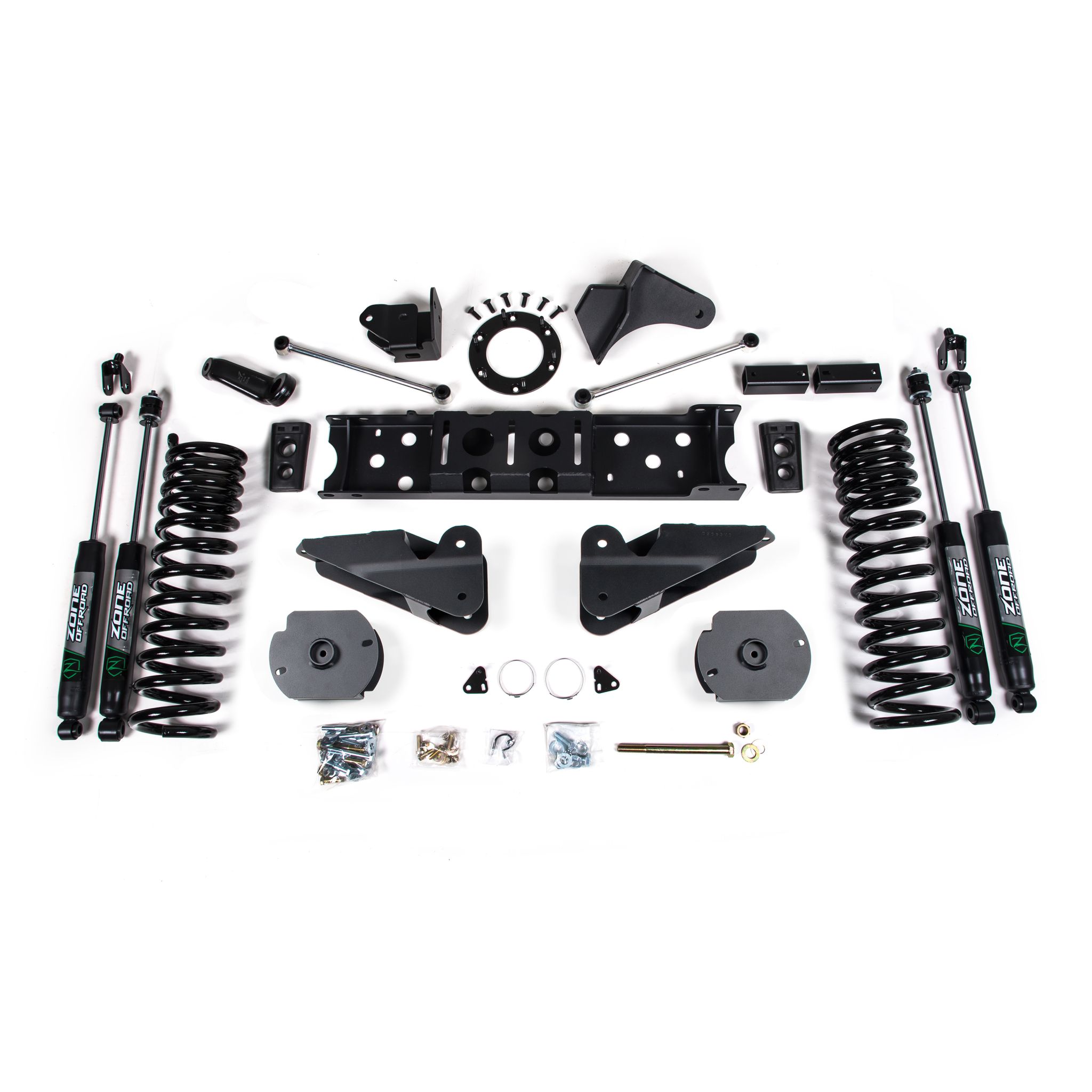 Zone Offroad adds to its lineup of suspension upgrades for the 2019+ RAM 2500 4WD trucks with new 4-4.5" standard lift kits engineered for better on-road and offroad performance. Designed to lift and level the stance, these new 4-4.5" systems add strength to your RAM with high strength radius arm drop brackets, progressive rate coil springs, gas shocks and more allowing clearance for up to 37" tires. As with all Zone Offroad kits these new 4-4.5" standard lift kits are backed by Factory Protection Plus for peace of mind wherever you choose to explore.