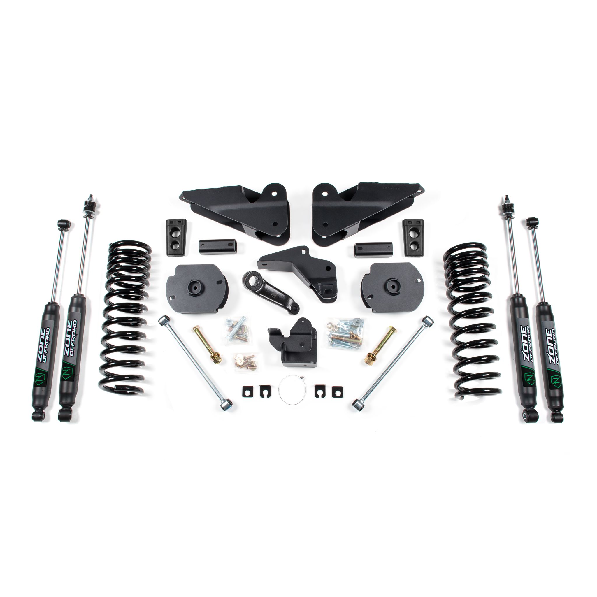 Take your RAM 2500 to new heights with this 4" lift kit from Zone Offroad. Kits include everything needed from full length coil springs and stout radius arm relocation brackets to steering correction and rear lift to level the stance. Get the look, performance, and capability your truck deserves with clearance for up to 37" tires.