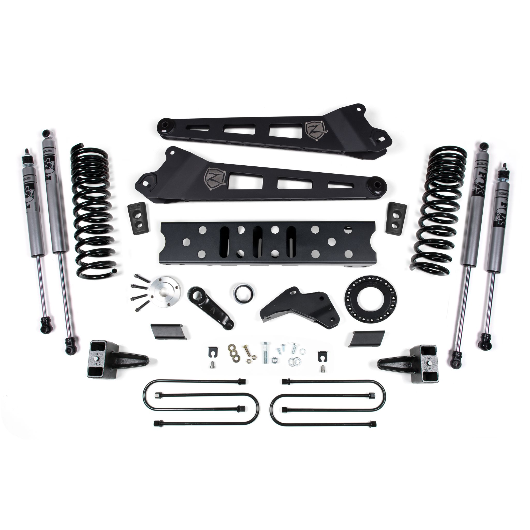 Take your RAM 3500 to new heights with this 5.5" radius arm lift kit from Zone Offroad. Kits include everything needed from full length coil springs and heavy duty radius arms to steering correction and rear lift to level the stance. Get the look, performance, and capability your truck deserves with clearance for up to 37" tires.