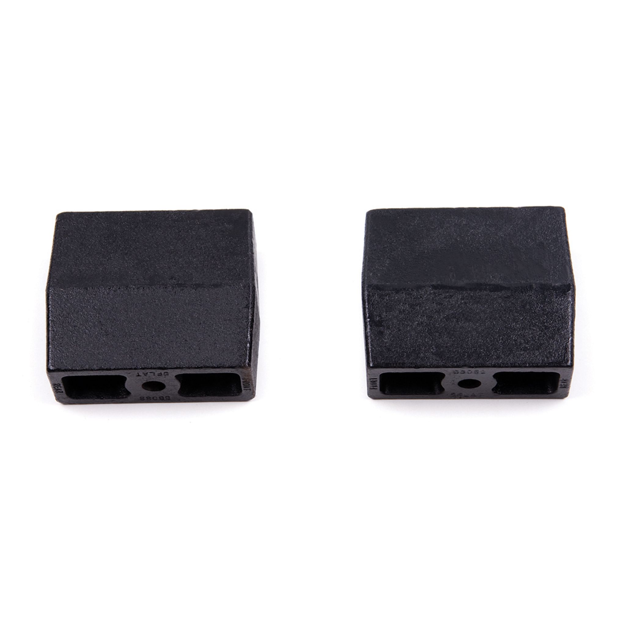 These high quality 5" cast iron lift blocks are specially designed to lift the rear of leaf spring trucks. They come finished in a black e-coating and are flat (non-tapered). Uses 9/16" pin size. Sold in pairs.