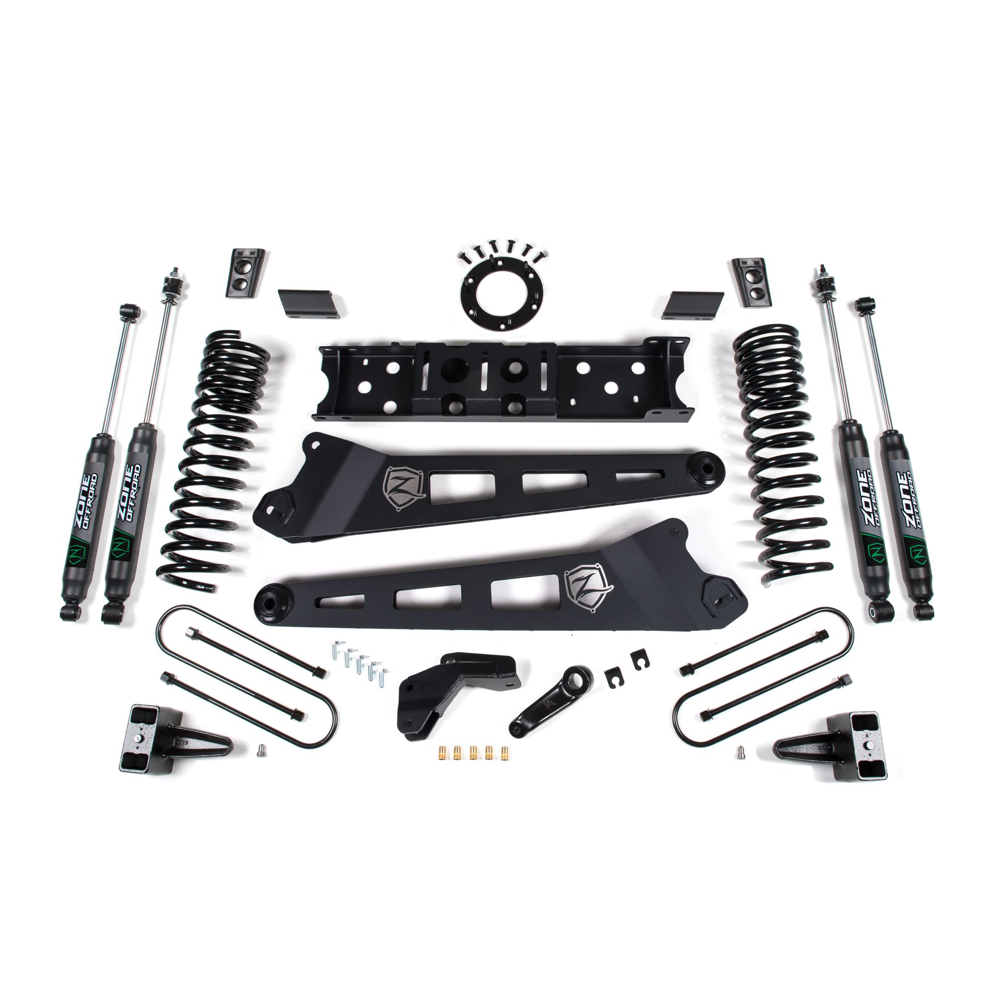 Take your RAM 3500 to new heights with this 6.5" radius arm lift kit from Zone Offroad. Kits include everything needed from full length coil springs and heavy duty radius arms to steering correction and rear lift to level the stance. Get the look, performance, and capability your truck deserves with clearance for up to 37" tires.