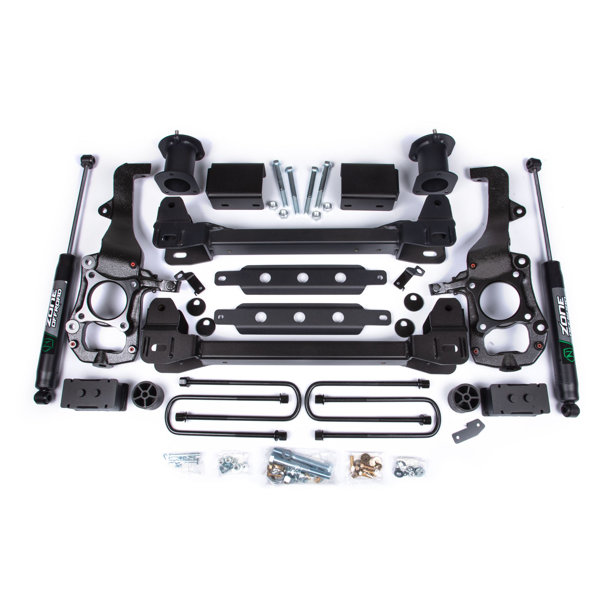 Take your 21-23 F150 2wd to new heights with this 6" lift kit from Zone Offroad. Kits include everything needed from high strength crossmembers and steering knuckles to strut spacers and 2 rear block options to level out the stance. Engineered to the highest standard to maintain ride quality and handling performance. Get the look, performance, and capability your truck deserves with clearance for 35-37" tires.