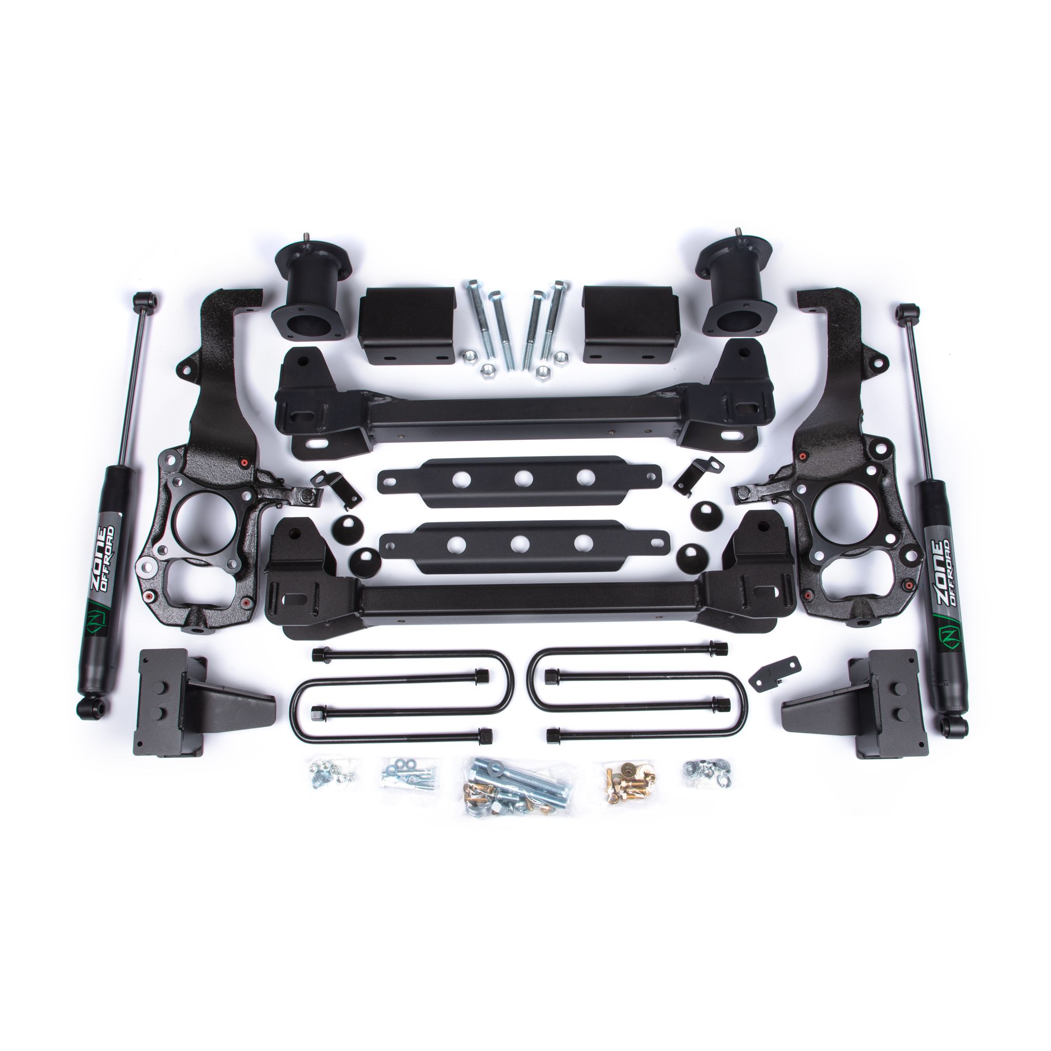 Take your 21-23 F150 2wd to new heights with this 6" lift kit from Zone Offroad. Kits include everything needed from high strength crossmembers and steering knuckles to strut spacers and 2 rear block options to level out the stance. Engineered to the highest standard to maintain ride quality and handling performance. Get the look, performance, and capability your truck deserves with clearance for 35-37" tires.