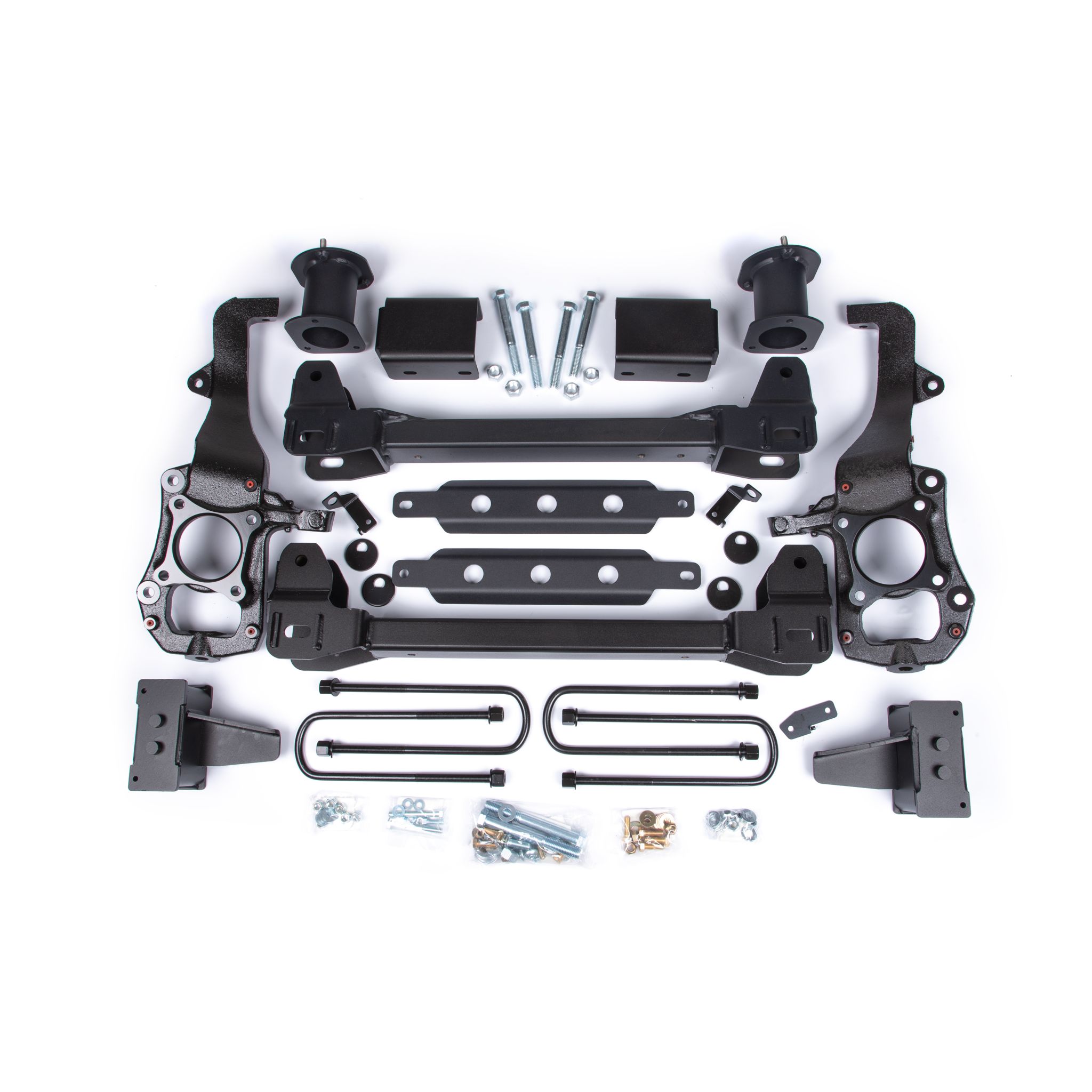 Take your 21-23 F150 2wd to new heights with this 6" lift kit from Zone Offroad. Kits include everything needed from high strength crossmembers and steering knuckles to strut spacers and 2 rear block options to level out the stance. Engineered to the highest standard to maintain ride quality and handling performance. Get the look, performance, and capability your truck deserves with clearance for 35-37" tires.