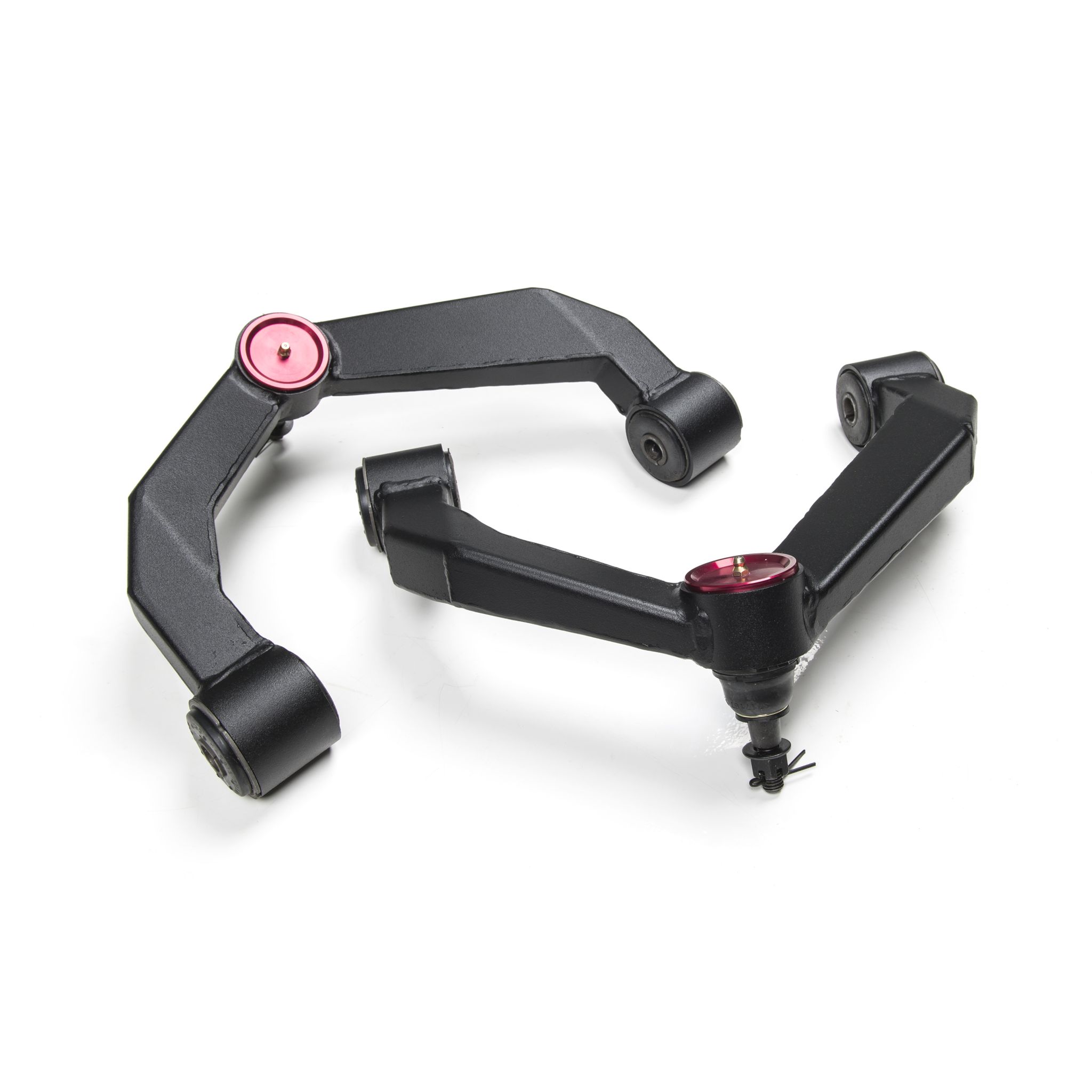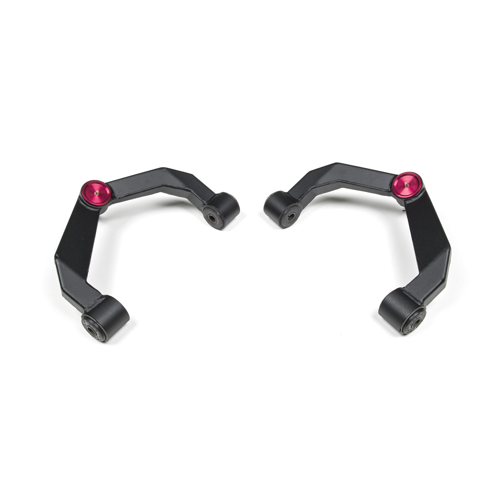 These arms are built from high strength steel, boxed, gusseted and fully welded for strength and rigidity. At the frame mount they use OE style rubber bushings for a long service free life and quiet operation. At the other end these arms feature an indexed ball joint cup designed for use with leveling and lifted applications. High strength ball joints are used with a protective ball joint cap to keep debris out. These upper control arms come fully assembled and ready to bolt in right out of the box.