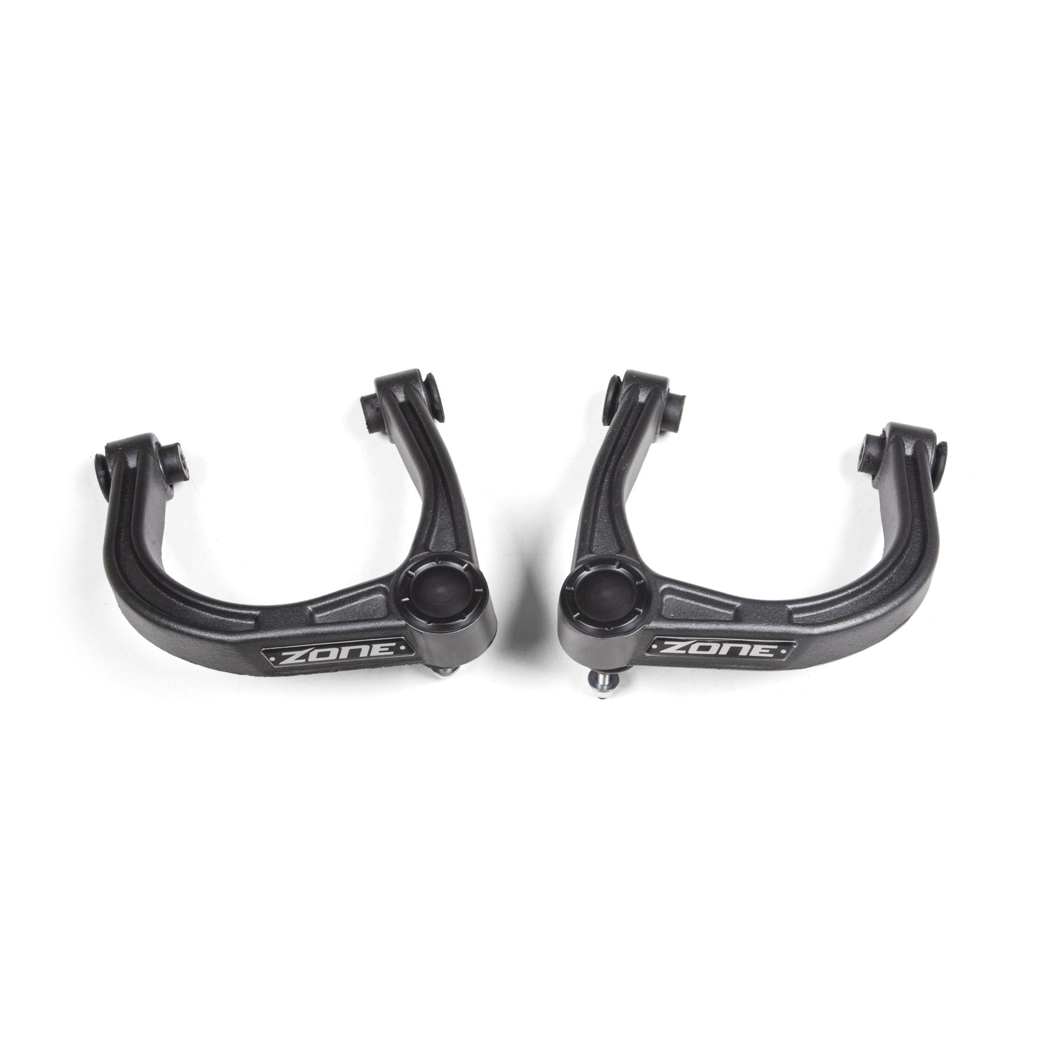 Upgrade your Bronco's stock upper control arms with these high strength Adventure Pro Series units from Zone Offroad. Designed for use on lifted setups these arms all for increased droop travel, improved strength and great looks. The arms come ready to install right out of the box with rubber bushings and HD ball joints preinstalled.